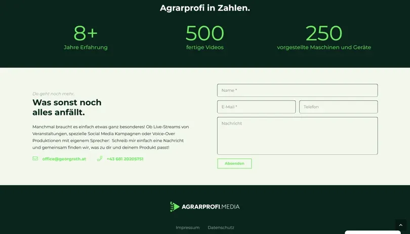 Agrarprofi ist spezialisiert auf die Erstellung von agrarischen Fotos, Produktvideos und Drohnenaufnahmen. Diese müssen natürlich auch ins richtige Licht gerückt werden: mit einer modernen und individuellen Webseite!